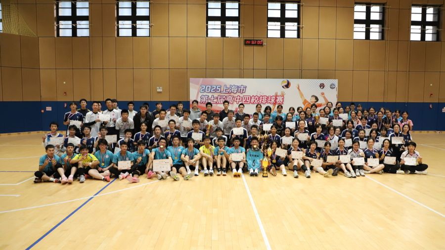 上海市第七届高中四校排球赛日前在复旦大学江湾校区落幕。来自上海中学、华东师范大学第二附属中学、上海交通大学附属中学、复旦大学附属中学的男女排共八支队伍展开激烈角逐,最终,交大附中卫冕男子组冠军,复旦附中摘得女子组桂冠。